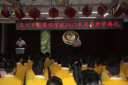 9月3日上午8:30, 泉州市盲聾啞學校在三樓演播廳隆重舉行了2012—2013學年度第一學期秋季開學典禮。