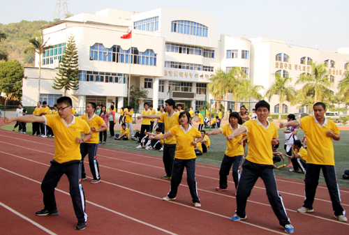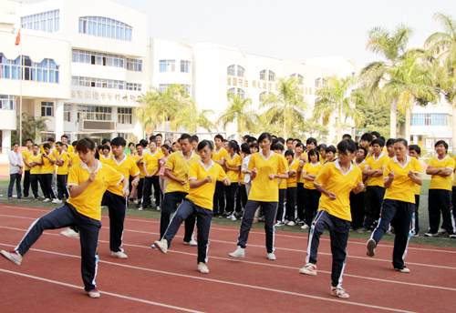 泉州市盲聾啞學(xué)校認(rèn)真貫徹落實(shí)《中共中央國(guó)務(wù)院關(guān)于加強(qiáng)青少年體育,增強(qiáng)青少年體質(zhì)的意見(jiàn)》文件精神,全面開(kāi)展校陽(yáng)光體育運(yùn)動(dòng),實(shí)行五祖拳健身操、廣播體操并行的大課間活動(dòng),有效提高學(xué)生的身體素質(zhì)。為了進(jìn)一步營(yíng)造熱愛(ài)體育、崇尚運(yùn)動(dòng)、健康向上的良好氛圍。2012年10月16日下午隆重舉行中學(xué)部五祖拳操比賽。經(jīng)過(guò)劇烈角逐,盲部初三年榮獲第一名,高二年榮獲第二名,高一年榮獲第三名;聾部高一年榮獲第一名,初三、高三年并列第二名,初一年榮獲第三名。
