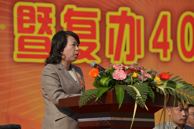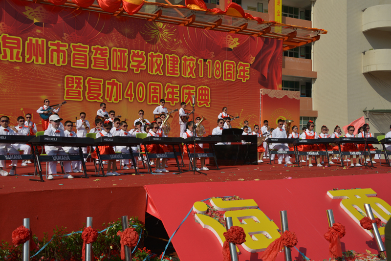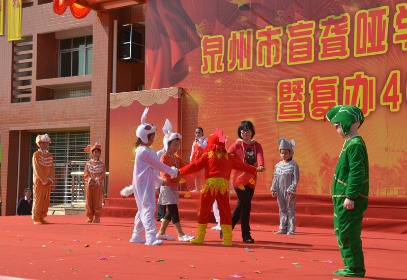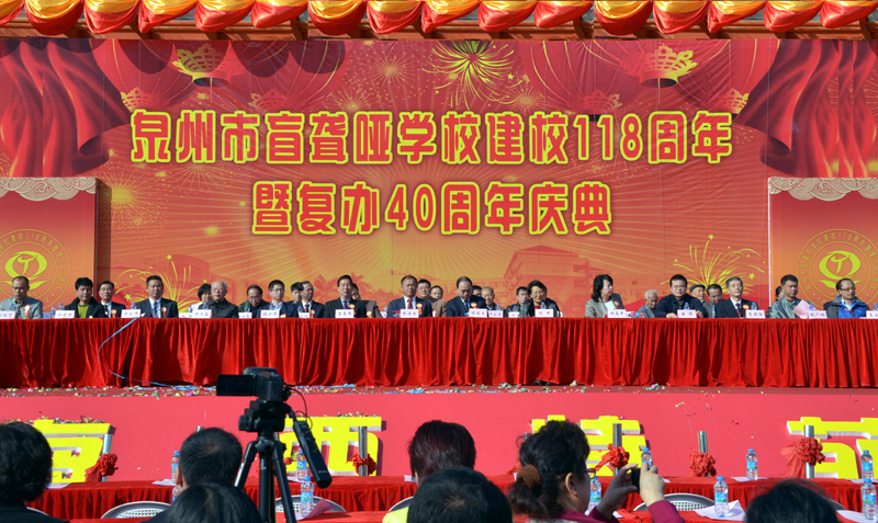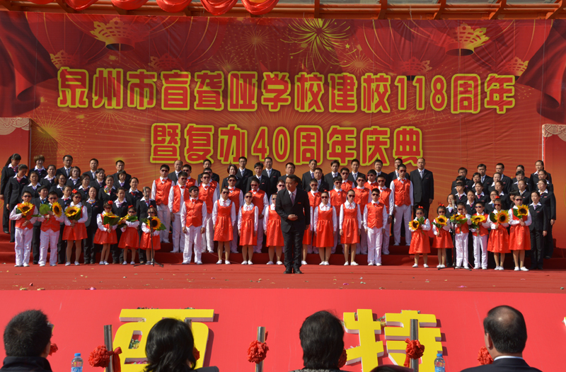 泉州市副市長周真平代表市政府發表重要講話,希望泉州市盲聾啞學校以建校118周年暨復辦40周年為契機,秉承“礪志善學”的校訓,繼續發揚自強不息、無私奉獻、爭創一流、先行先試的精神,為社會培養更多殘而有為的社會主義建設者,把泉州市盲聾啞學校建設成為中國特殊教育的金色名片;希望各位教師繼續發揚甘為人梯、淡泊名利、奉獻特教的精神,努力成為育殘成才、為人師表的楷模;希望各位校友銘記母校教誨,做一個殘而有為的生活強者,一如既往地支持關心母校的發展,為家鄉的建設作出自己的貢獻!