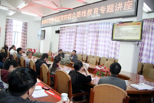 最后,泉州市盲聾啞學校校長、書記蔡景燦號召全體黨員教師要提振精神、提高認識、深入領會今天的講座精神,掀起我校的群眾路線教育實踐活動的新高潮,為辦人民滿意的特殊教育作出力所能及的貢獻。
