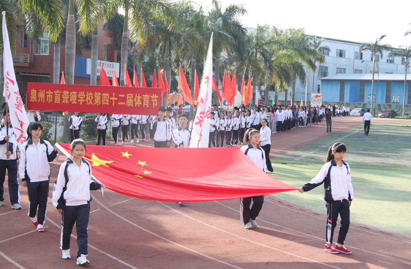 2014年11月6日上午8時(shí)整,一縷燦爛的陽光溫暖了微涼的清晨,泉州市盲聾啞學(xué)校第四十二屆體育節(jié)暨第十六屆福華杯田徑運(yùn)動會開幕式在運(yùn)動場隆重舉行。